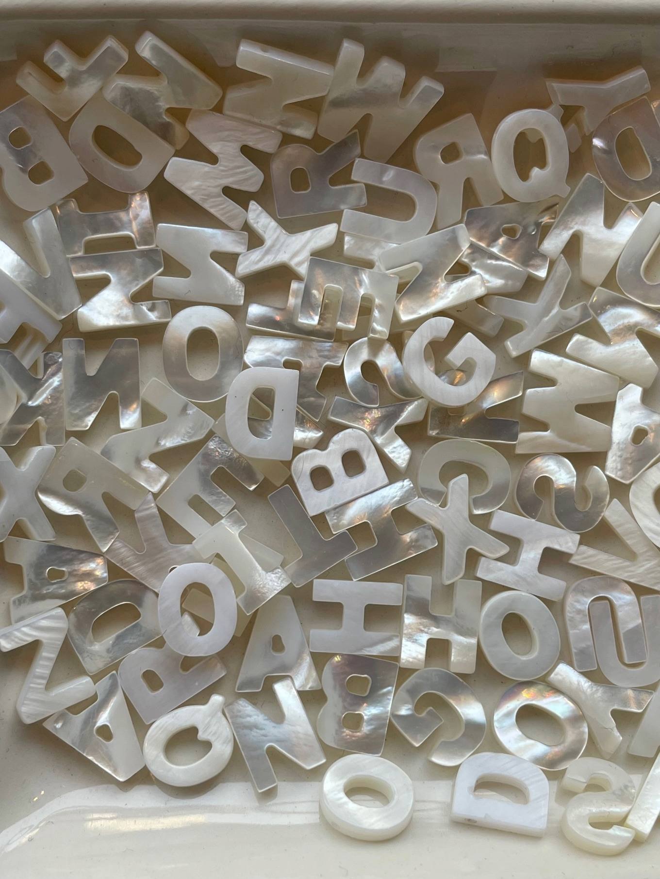 Perlmutt, Perle, ABC, weiß